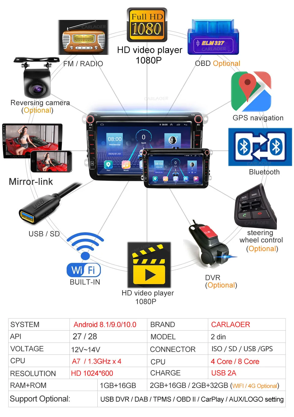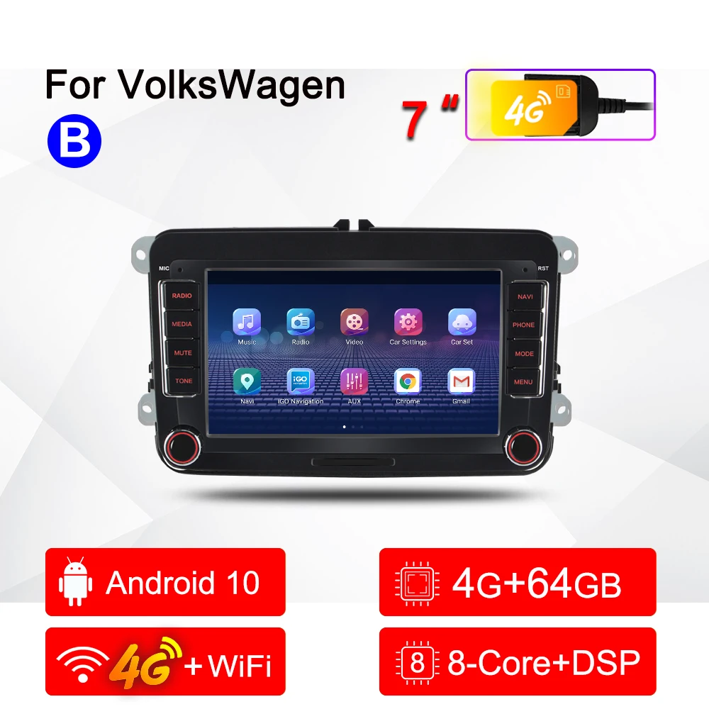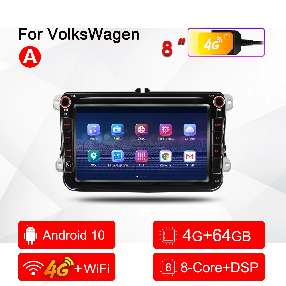 Автомагнитола 2 din на Android 10 для VWVolkswagenGolfPassatb7b6SkodaSeatOctaviaPoloTiguan