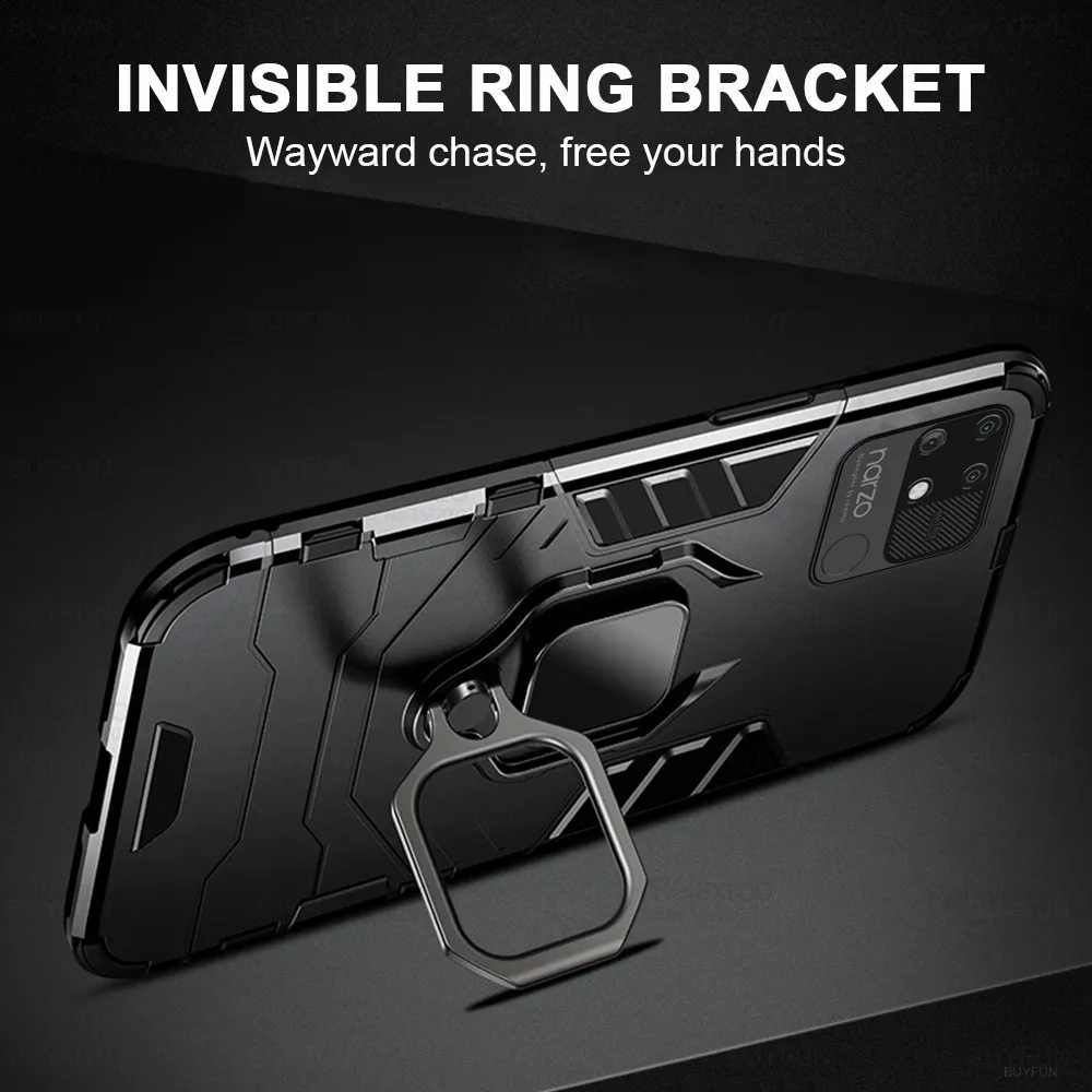 Чехол для Oppo Realme Narzo 50A, автомобильный магнитный держатель, защитный чехол Realmi Realmy Narzo50A 50 A RMX3430, ударопрочный чехол с кольцом-подставкой