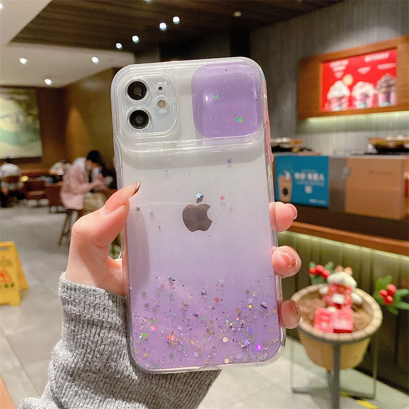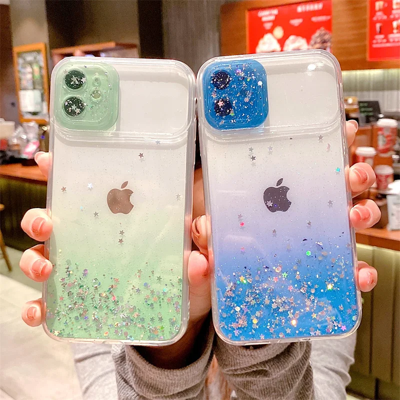 FeatureCandy Color Gradient Glitter Bling Star Sequins Slide Lens iPhone Case