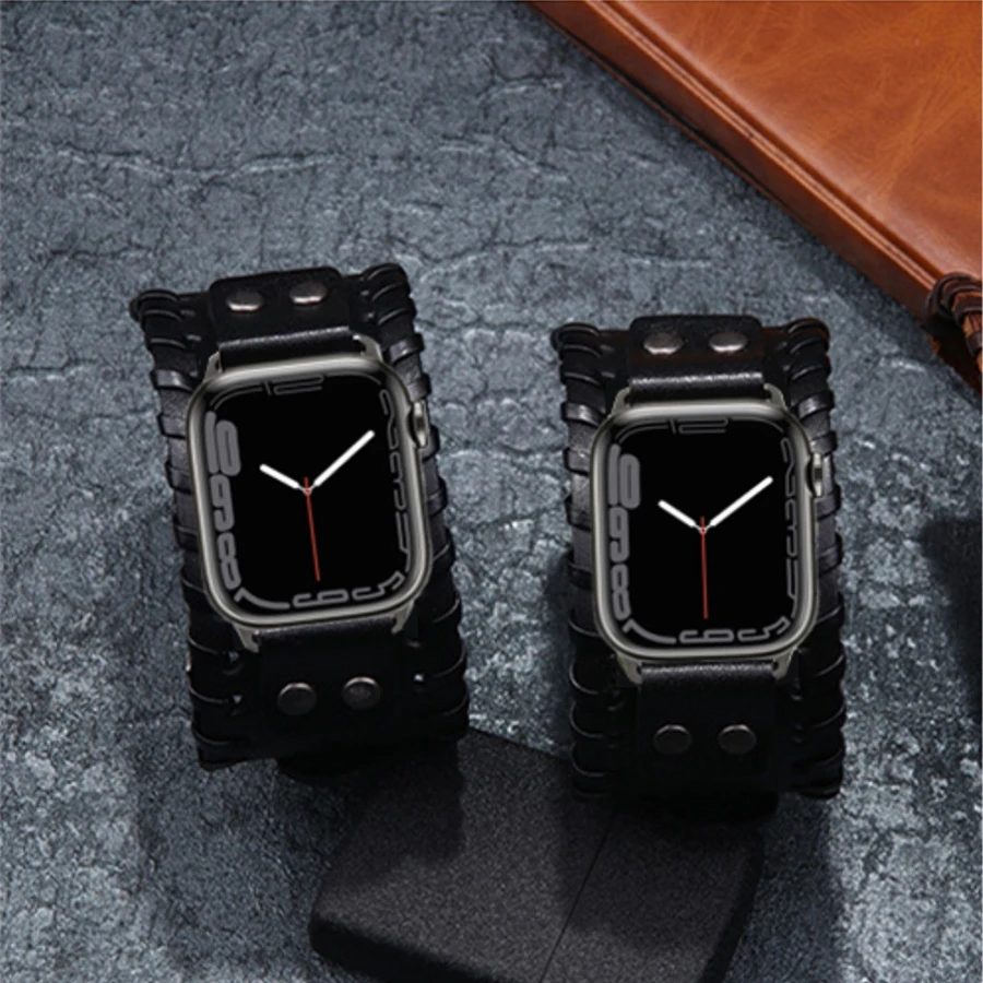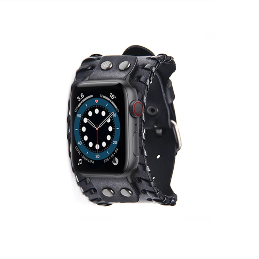 Браслет кожаный в стиле панк для Apple Watch Series 7 6 SE 5 4 3 41...