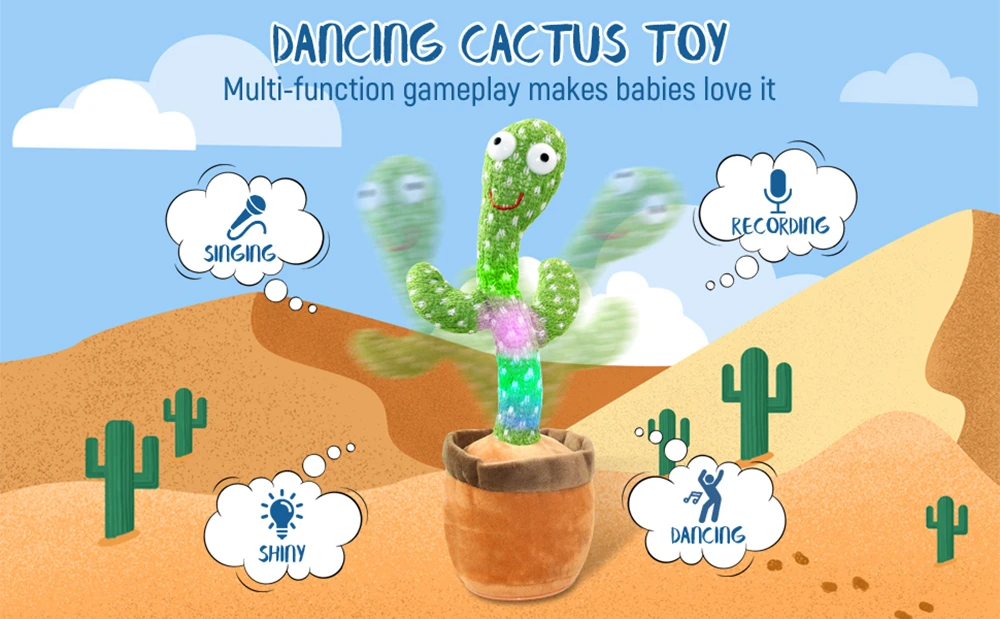 Танцующий кактус, говорящая игрушка, электронные плюшевые игрушки, пение, запись, освещение, раннее образование, смешной Рождественский подарок для детей