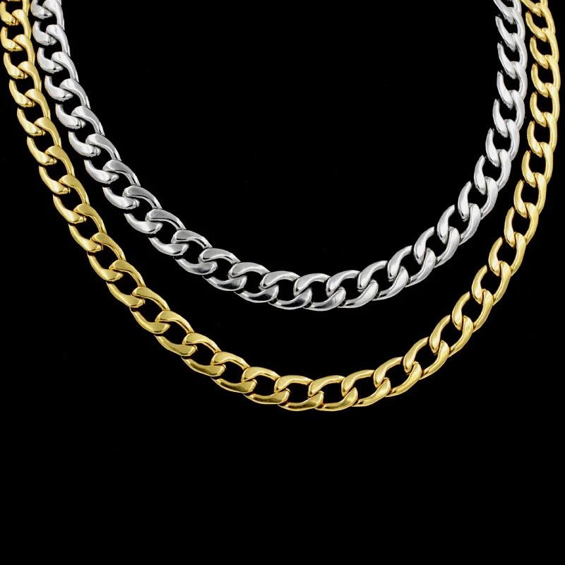 Цепочка Из кубинской цепи шириной 5 мм7 мм, ожерелья для мужчиндевочек, цепочка из нержавеющей стали золотогостального цвета в стиле хип-хоп, готическое чистое ожерелье, оптовая продажа 2021