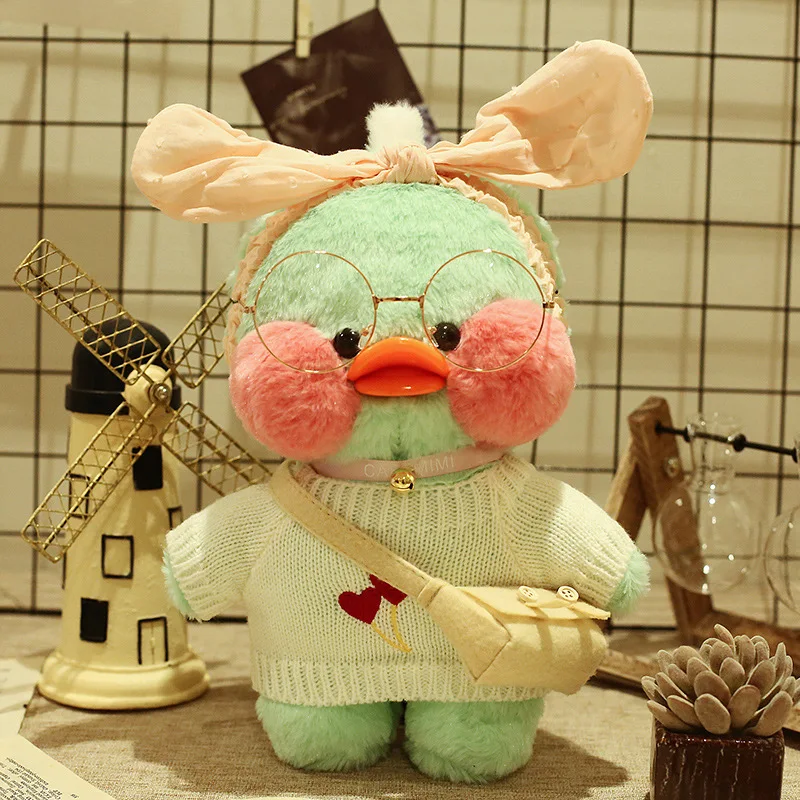 Красивая зеленая утка плюшевая игрушка с кавайной маленькой одеждой, 30 см, мягкая набивная кукла-животное, подарок на день рождения для девочек и детей