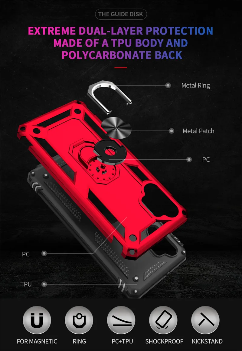 Чехол для Samsung Galaxy A12 A22 A32 A42, противоударный армированный чехол для телефона Galaxy A52 A72, подставка-держатель, автомобильная задняя крышка с кольцом