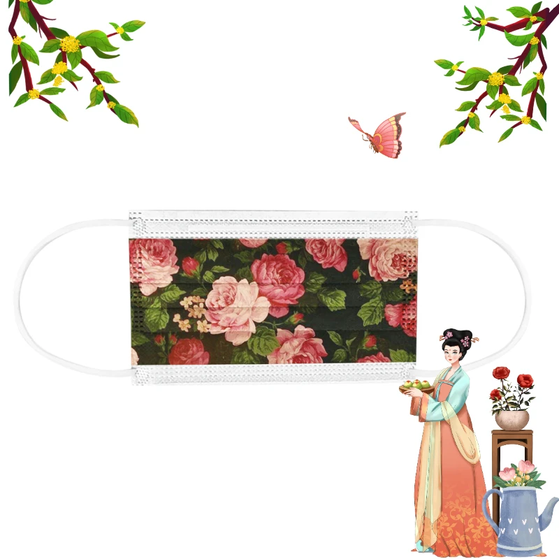 50-300 шт., одноразовые маски для лица с рисунком роз и пионов