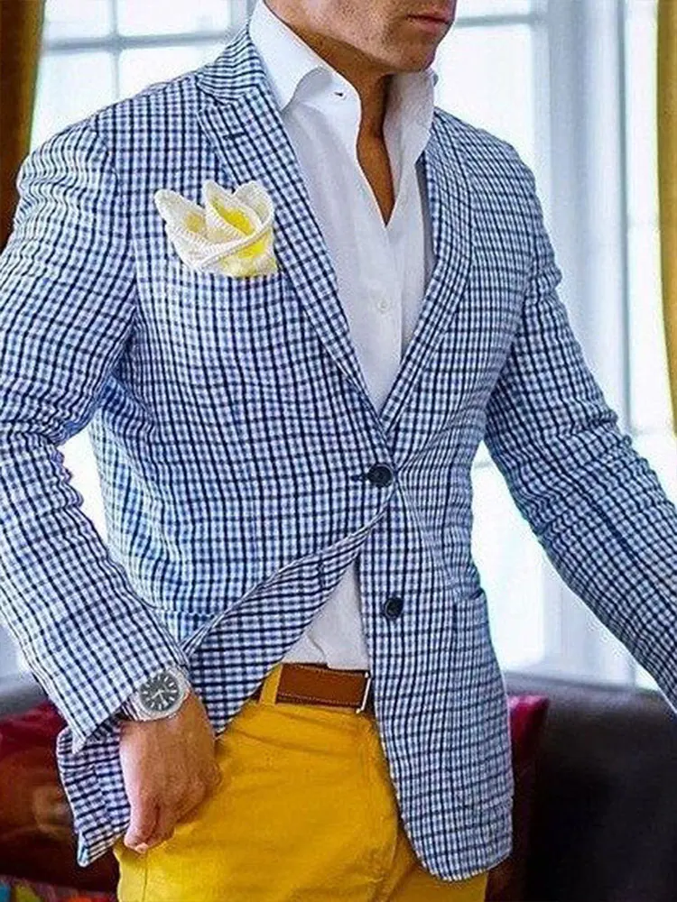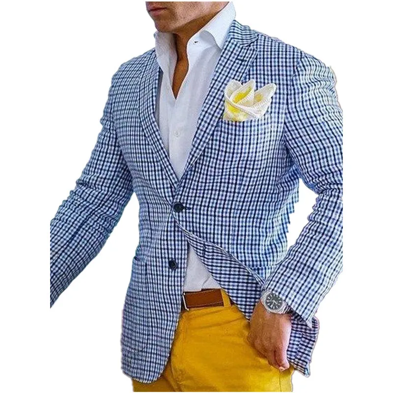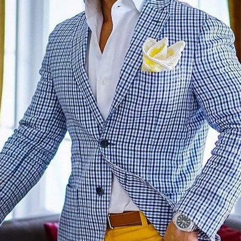 Мужской Блейзер в клетку, с длинным рукавом и принтом
