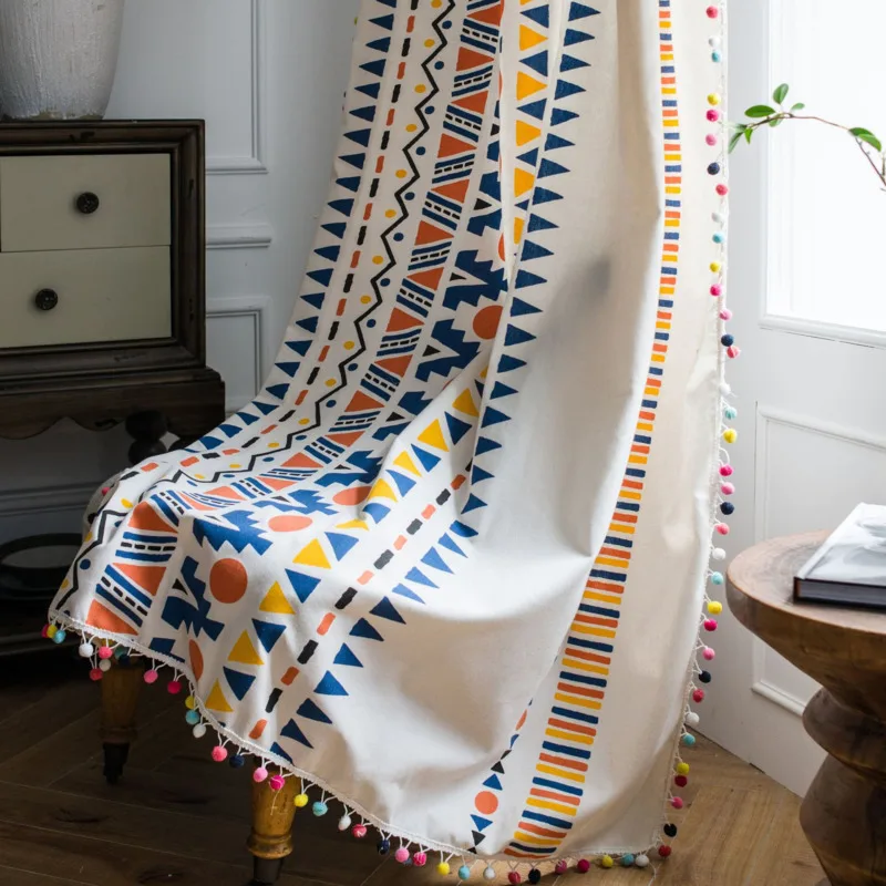 Занавески из хлопка и льна с принтом, декоративные цветные шторы для гостиной в богемном стиле, с окошком из шерсти, светонепроницаемые, тюль