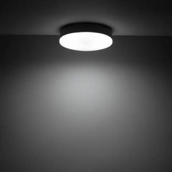 Преимущества лампы Долго служит: количество включений/выключений — 20000, время работы — 15 000 часов. Рассчитана на освещение площади 4,5 м², по яркости соответствует лампе накаливания 75 Вт, при этом потребляет всего 9 Вт. Пластиковый матовый корпус смягчает и рассеивает свет.Подробнее о том, как выбрать лампу для светильника, читайте в нашей статье.