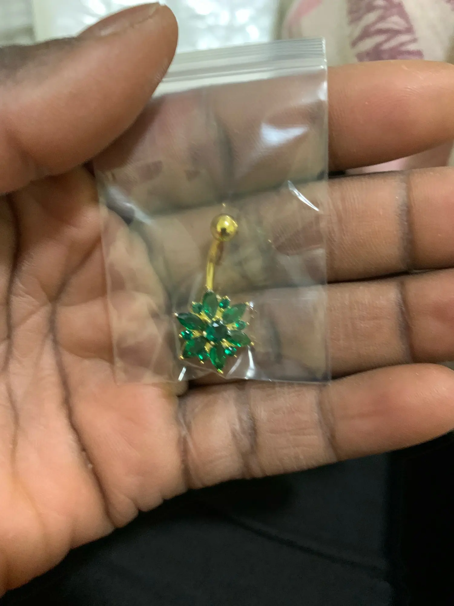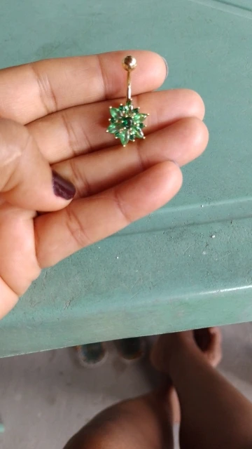 Женское кольцо для пупка с зелеными цветами из нержавеющей стали 316L