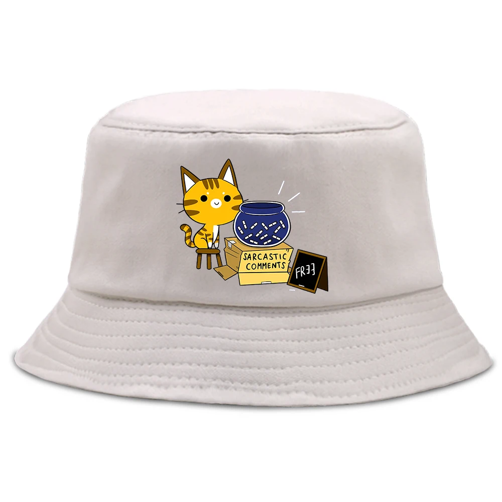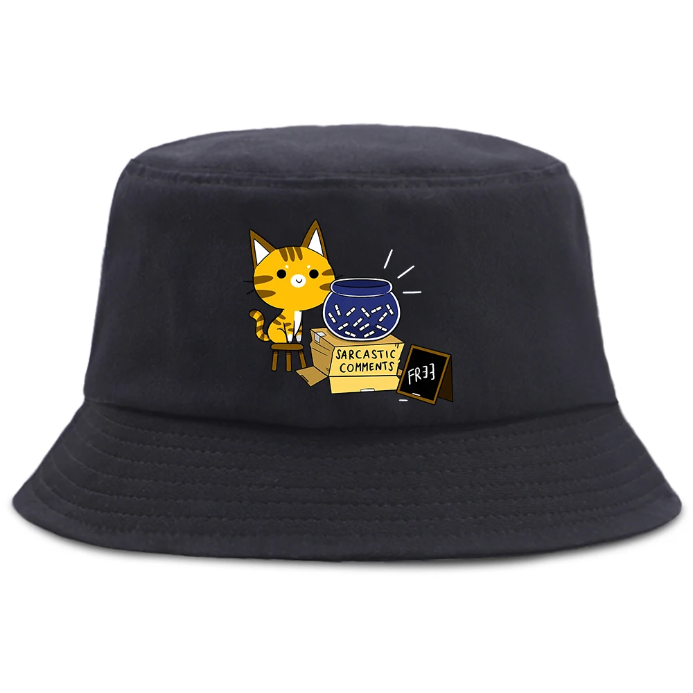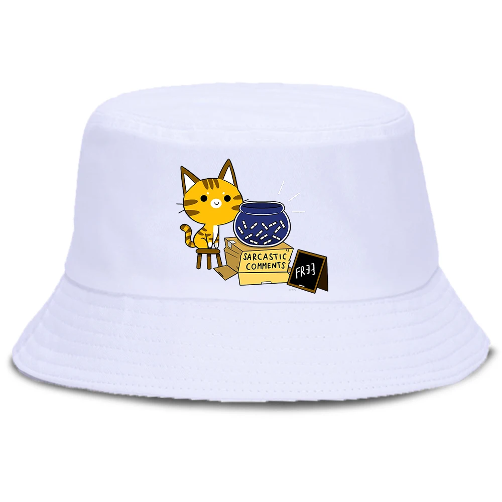 Панама с мультяшным рисунком кота саркастическая для мужчин и женщин, хлопок, шапка в стиле хип-хоп, графическая пляжная шляпа от солнца, летние комментарии