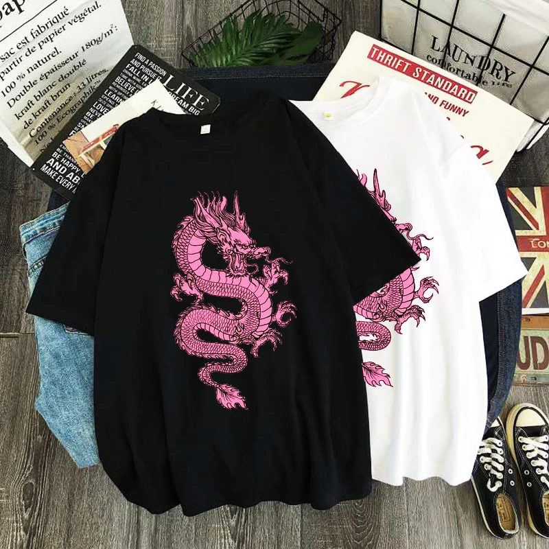 Женские футболки, уличная одежда с принтом дракона, топы, футболка ...
