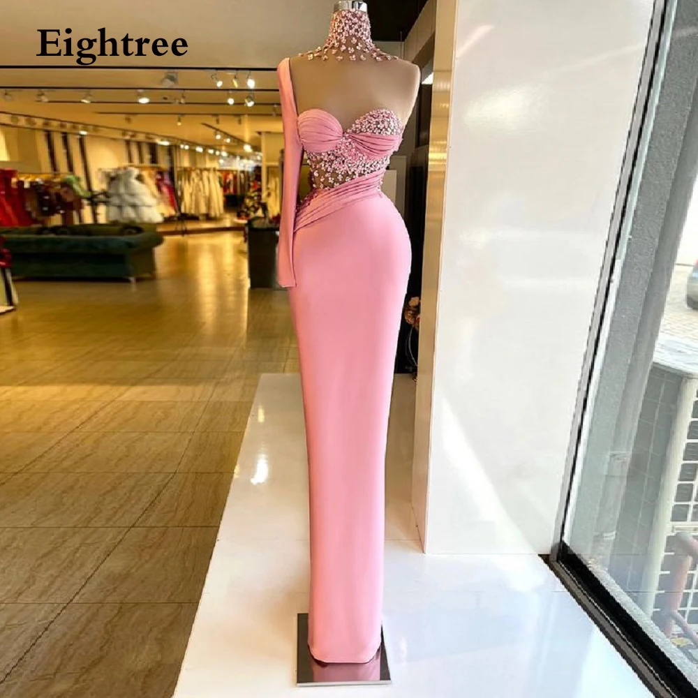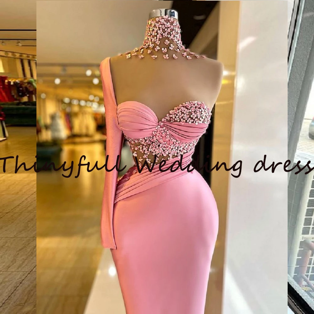Милые розовые длинные платья с маленьким цветочным рисунком, платье с одним рукавом, высоким воротом и одним рукавом, вечерние платья в стиле Саудовской Аравии, вечерние платья