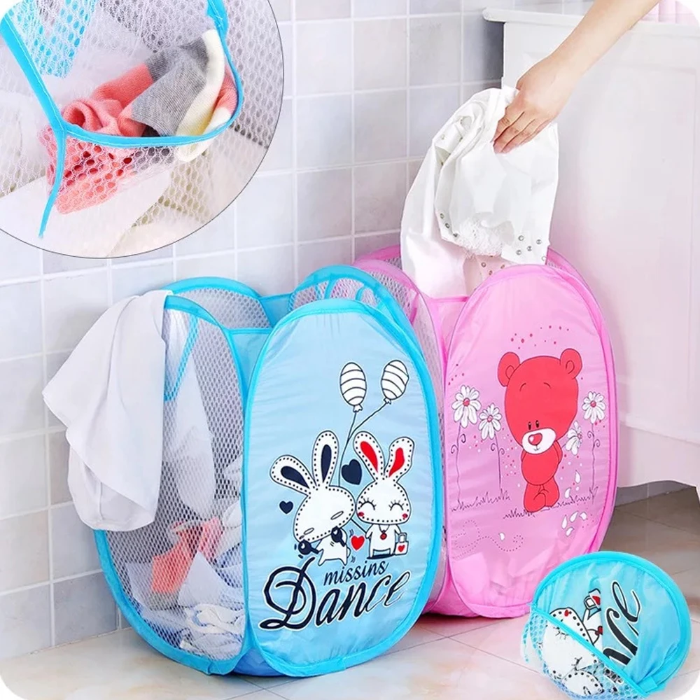 Складная корзина для белья, всплывающая открытая сетчатая корзина для грязного белья, корзина для сортировки детской одежды