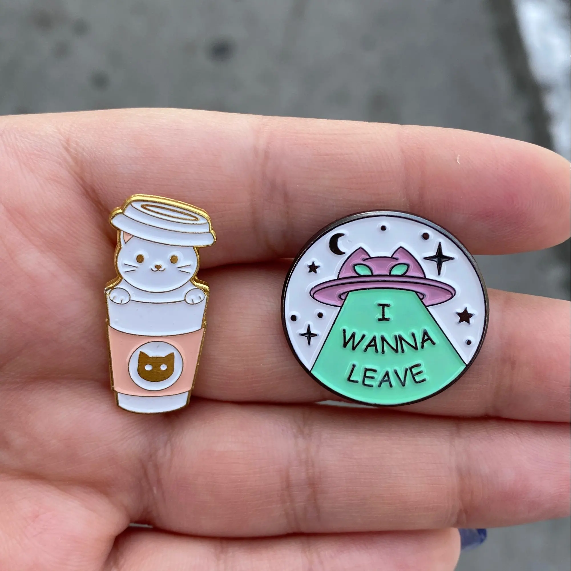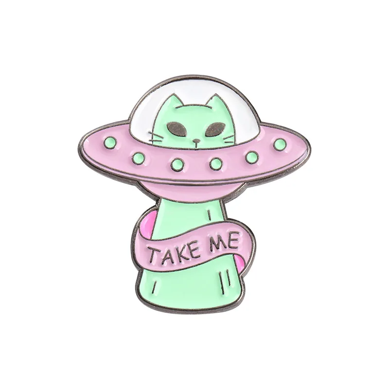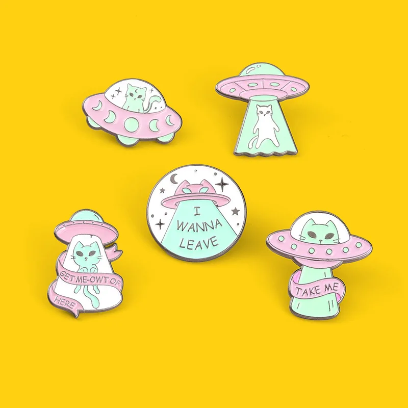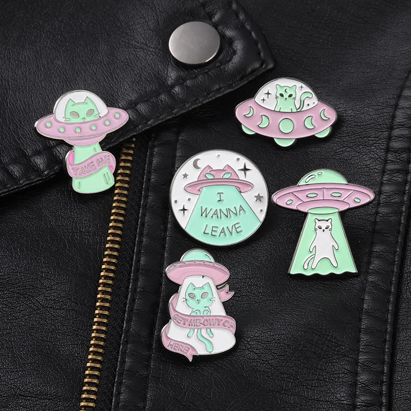 Эмалированный значок космический корабль инопланетянин Кот НЛО эмалированный значок Кот космический корабль Броши для детей Творческий мультфильм лацкан значок для рюкзака ювелирные изделия подарок