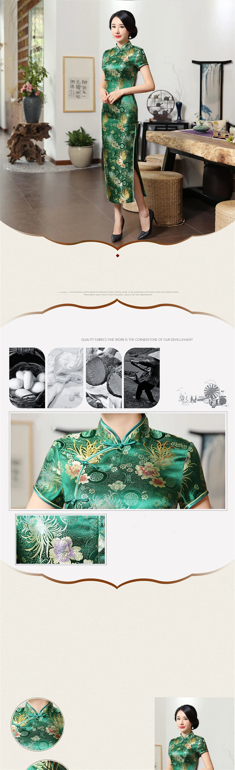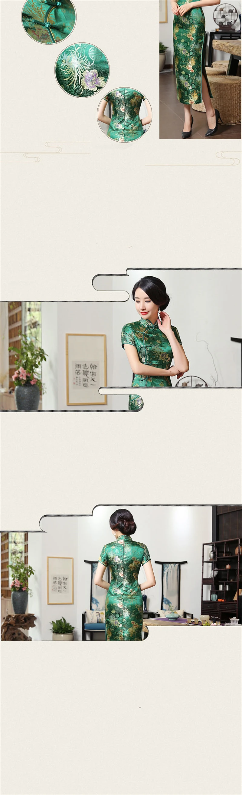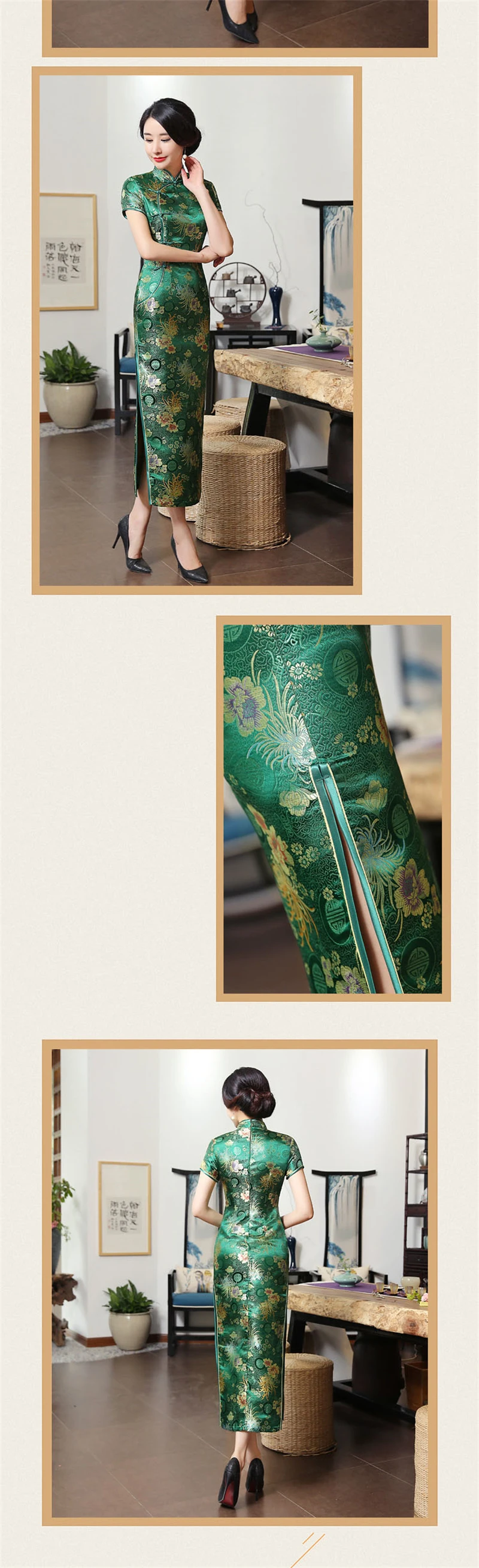 Женское длинное платье Ципао, зеленое классическое платье из искусс...