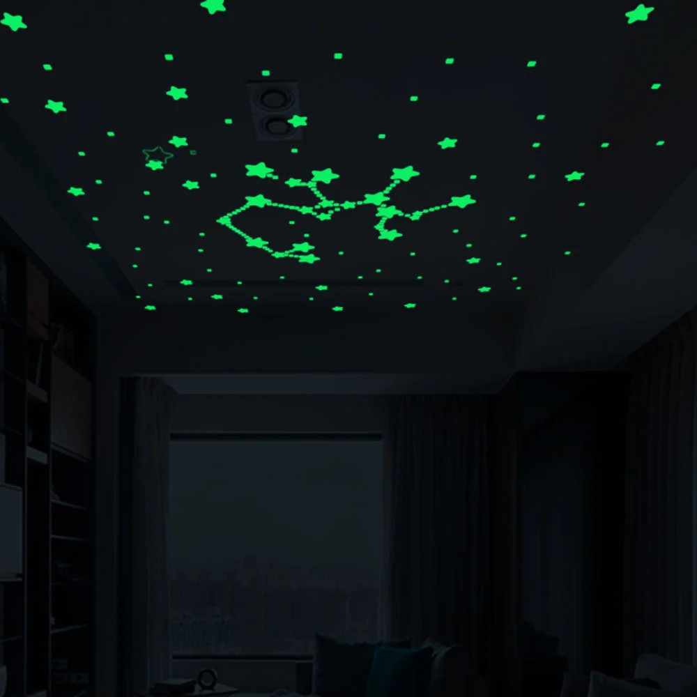 Самоклеящиеся флуоресцентные наклейки 3D в виде пузырьков, звезд, Л...