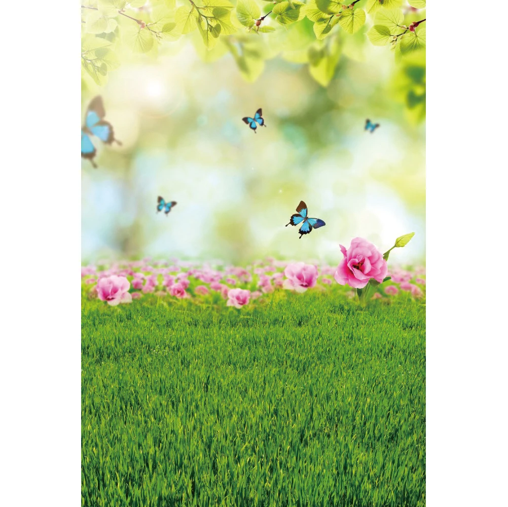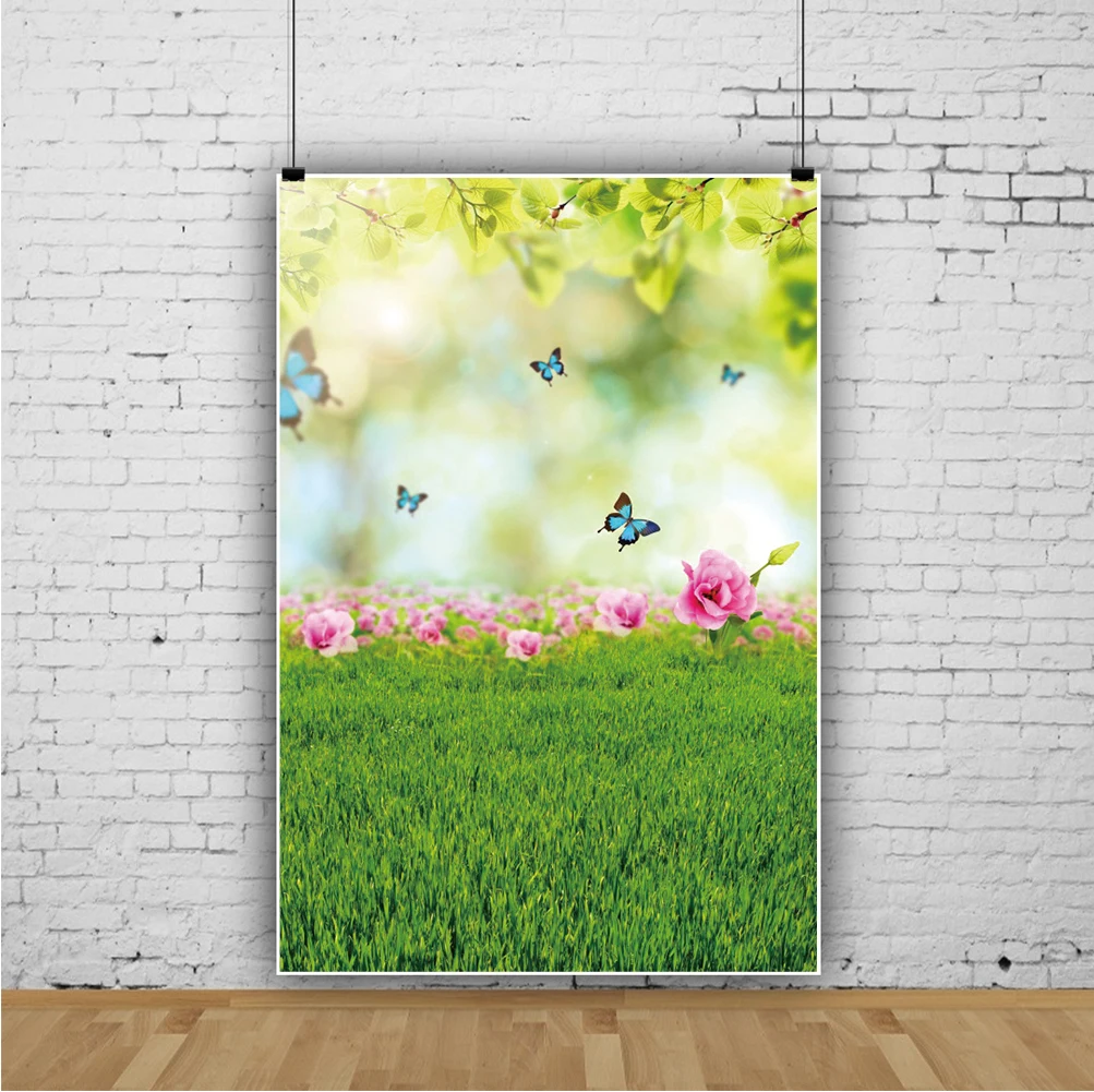 Laeacco мечтательная Весенняя зеленая трава бабочка фотосессия фон новорожденный ребенок день рождения Пасхальный портрет фотография фон
