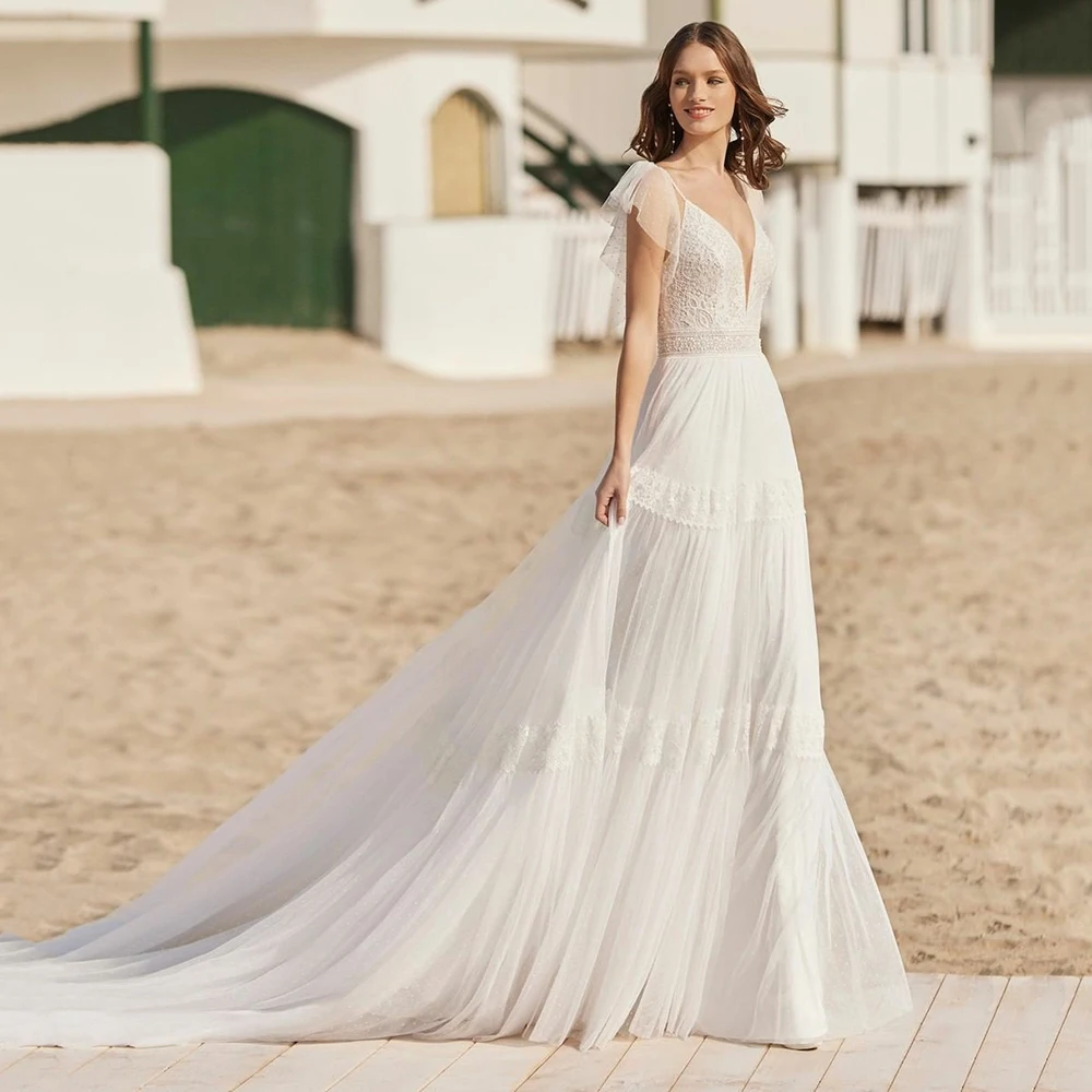 UZN элегантное кружевное фатиновое свадебное платье принцессы в стиле бохо, сексуальные милые многоярусные платья на тонких бретелях для невесты, свадебное платье
