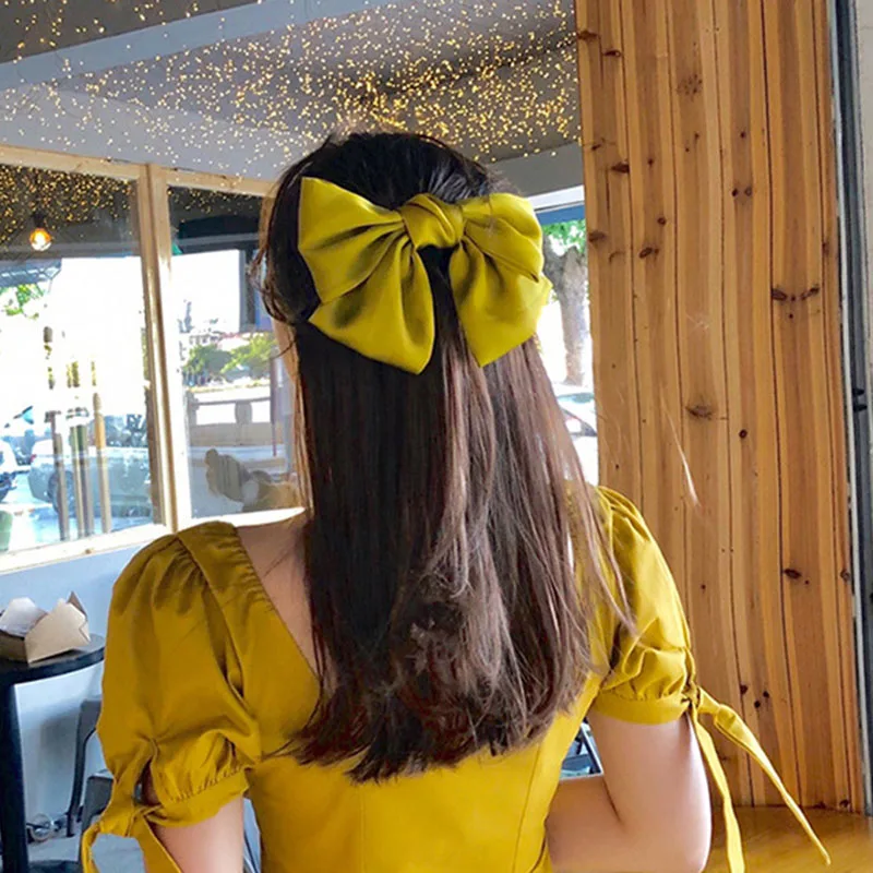 Женская атласная заколка для волос, с большим бантом