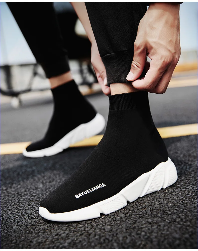 Носки кроссовки женщин мужские вязаные верхние дышащие спортивные туфли мягкие носки сапоги женские коренастые кроссовки высокие лучшие мужчины женщины ходьба обувь