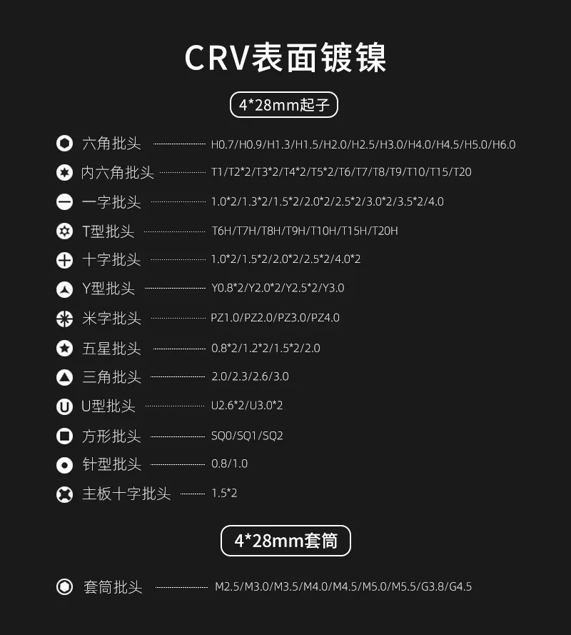 Многоцелевой Набор отверток с 93 насадками и 9 гнездами для различных вариантов применения.Многофункциональные отвертки могут использоваться для ремонта и разборки прецизионных цифровых продуктов или бытовых изделий-бит изготовлен из CR-V хромованадиевых сталей, твердость которых может достигать 52 °.Многоцелевой Набор отверток содержит различные аксессуары, которые можно использовать для создания различных способов обслуживания.Вспомогательное оборудование:4*28 мм бит, никелированная CR-V Поверхность:Болты с шестигранной: H0.7 H0.9 H1.3 H1.5 H2.0 H2.5 H3.0 H4.0 H4.5 H5.0 H6.0Torx: T1 T2 * 2 T3 * 2 T4 * 2 T5 * 2 T6 T7 T8 T9 T10 T15 T20С плоской головкой (с прорезями): 1,0*2 1,3*2 1,5*2 2,0*2 2,5*2 3,0*2 3,5*2 4,0Сверление: T6H T7H T8H T9H T10H T15H T20HPhillips: 1,0*2 1,5*2 2,0*2 2,5*2 4,0*2Tri-wing): Y0.8 * 2 Y2.0 * 2 Y2.5 * 2 Y3.0Pozidrive: PZ1.0 PZ2.0 PZ3.0 PZ4.0Пятиугольник (пятиугольник): 0,8*2 1,2*2 1,5*2 2,0Треугольник: 2,0 2,3 2,6 3,0U-форма: U2.6 * 2 U3.0 * 2Площадь: SQ0 SQ1 SQ2Разъем sim-карты: 0,8 1,0Противостояние: 1,5*24*28 мм гнездо, никелированная CR-V Поверхность:Розетках: M2.5 M3.0 M3.5 M4.0 M4.5 M5.0 M5.5 G3.8 G4.2Ручка * 1Мягкий удлинитель * 1Пинцет * 1Черное магнитное кольцо * 1