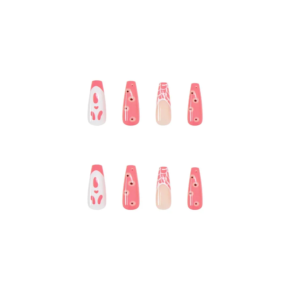 Накладные ногти накладные розовые с белыми облаками, 24 шт.