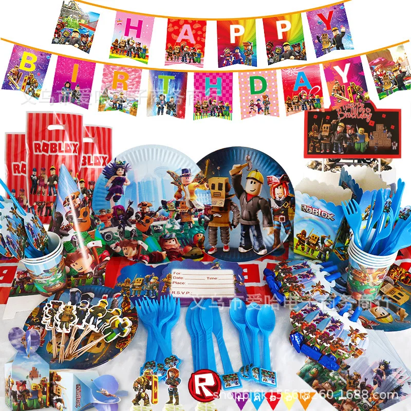 Robloxs, игровая быстрая одноразовая посуда, искусственные салфетки...