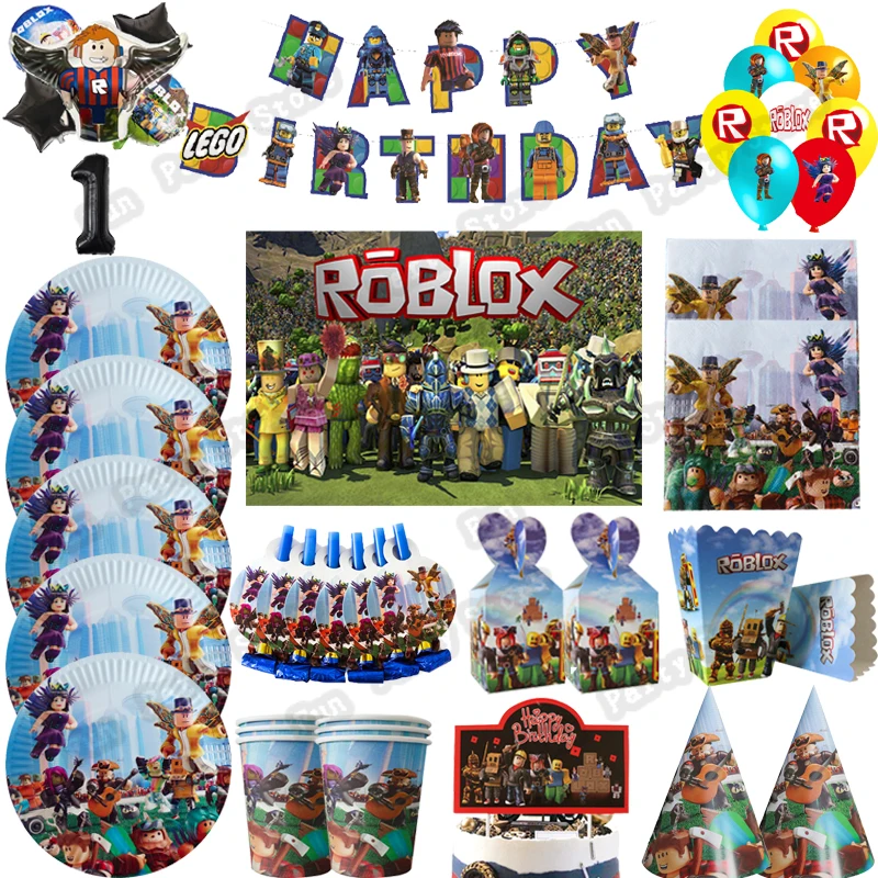 Блоки роботов Robloxed Game, товары для вечевечерние, набор посуды, бумажные салфетки, тарелки, чашки, соломинки, декор для детского дня рождения, Baby Shower