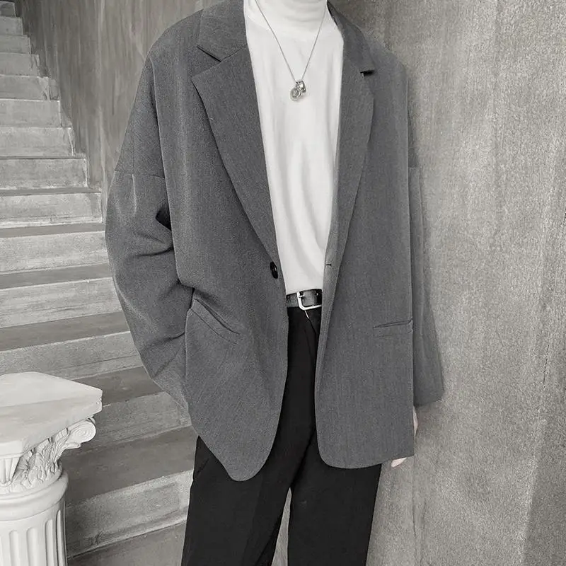 Мужские весенние свободные универсальные модные повседневные мужские костюмы в Корейском стиле ретро с одной пуговицей и карманами Ulzzang, шикарные топы в стиле Харадзюку