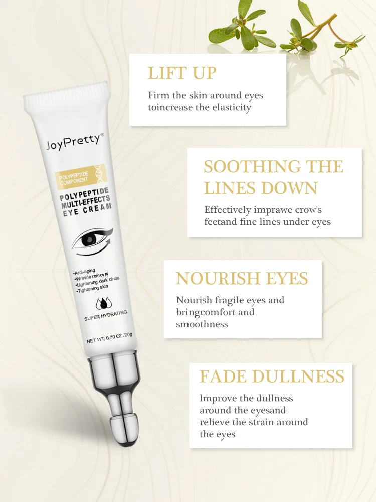 JoyPretty полипептид мульти-эффекты крем для глаз▶Чистая Содержание: 0,7 oz/20g▶Основные ингредиенты: гиалуронат натрия, португальский тмин, собитан оливат, пропиленгликоль, цетилтетрапептид▶Особенности продукта:1. Осветляющий темный круг2. Защита от старения3. Подтяжка кожи4. Удаление морщин5. Супер увлажнение