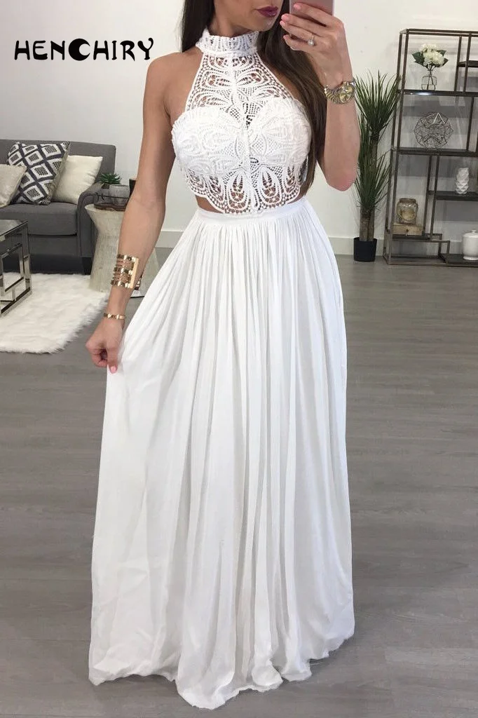 HENCHIRY женское летнее повседневное длинное вечернее коктейльное пляжное платье Сарафан длинные кружевные платья с открытой спиной бальное платье белое платье