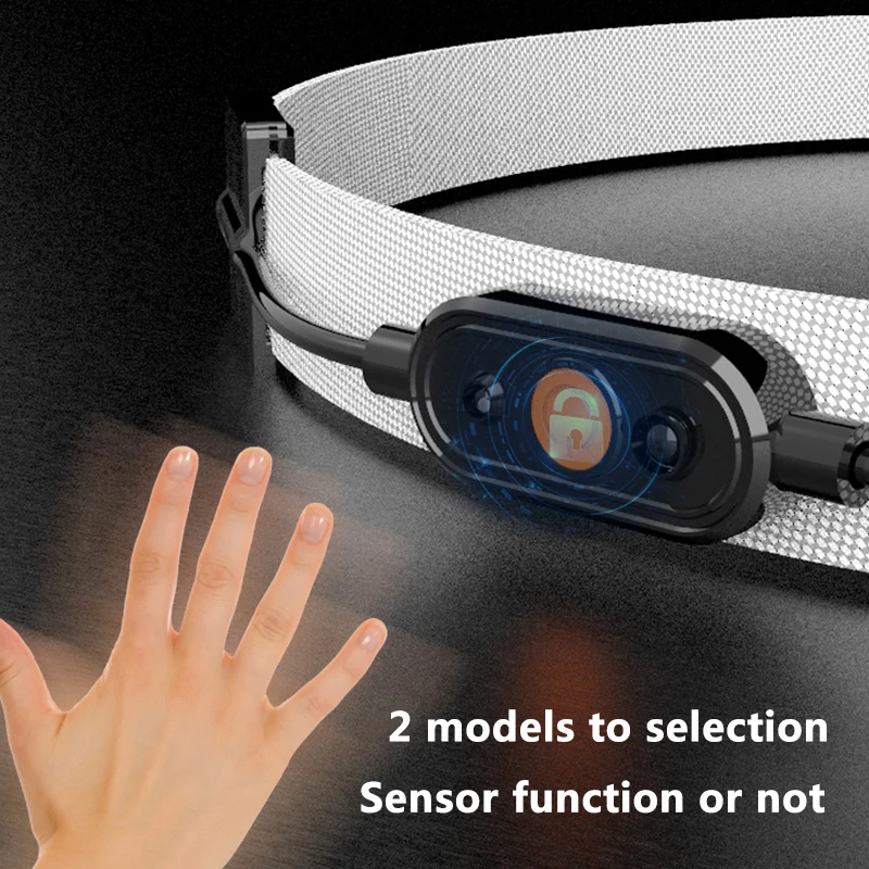 Светодиодный налобный фонарь с датчиком и монолитным блоком светодиодов, встроенный аккумулятор, водонепроницаемая лампа, белый и красный свет, для кемпинга и работы
