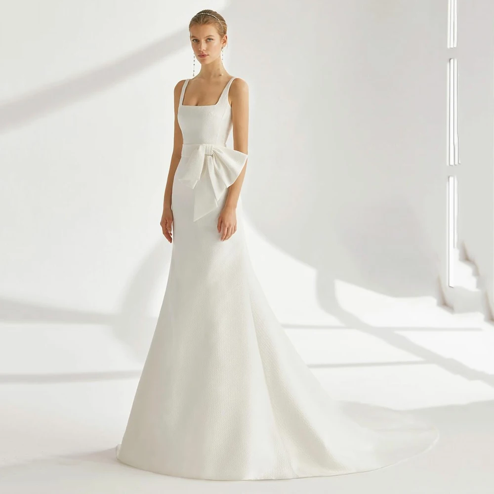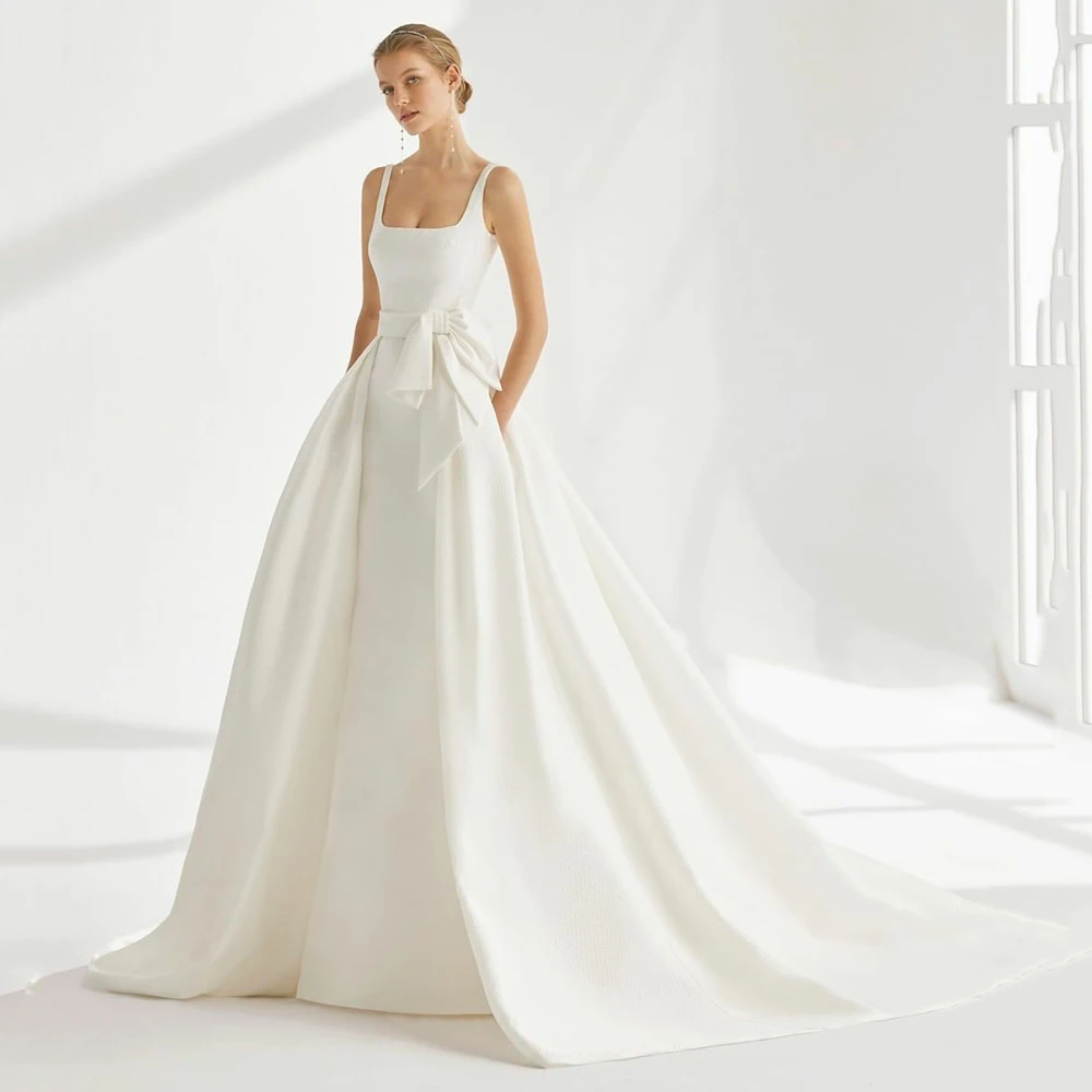 UZN элегантные атласные свадебные платья русалки со съемной юбкой трапециевидной формы с квадратным вырезом Свадебные платья с бантом