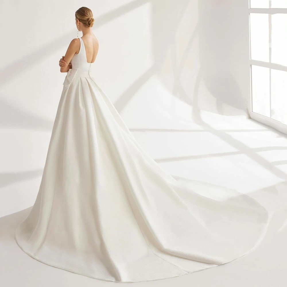 UZN элегантное атласное свадебное платье с юбкой-годе со съемной юбкой А-силуэта с квадратным вырезом платья невесты с бантом свадебное платье