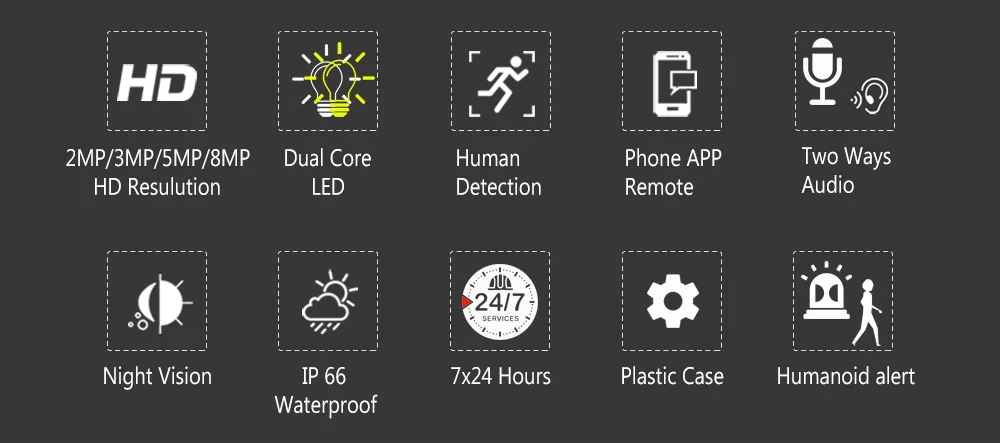 Потрясающий HD дисплей 2MP/3MP/4MP/8MPИмея Высокое разрешение 8 миллионов пикселей и реальный 3MP full HD на выбор, вы можете увидеть кристально чистые видео с помощью ip-камеры безопасности, обеспечивает вам и вашим близким достаточную безопасность.