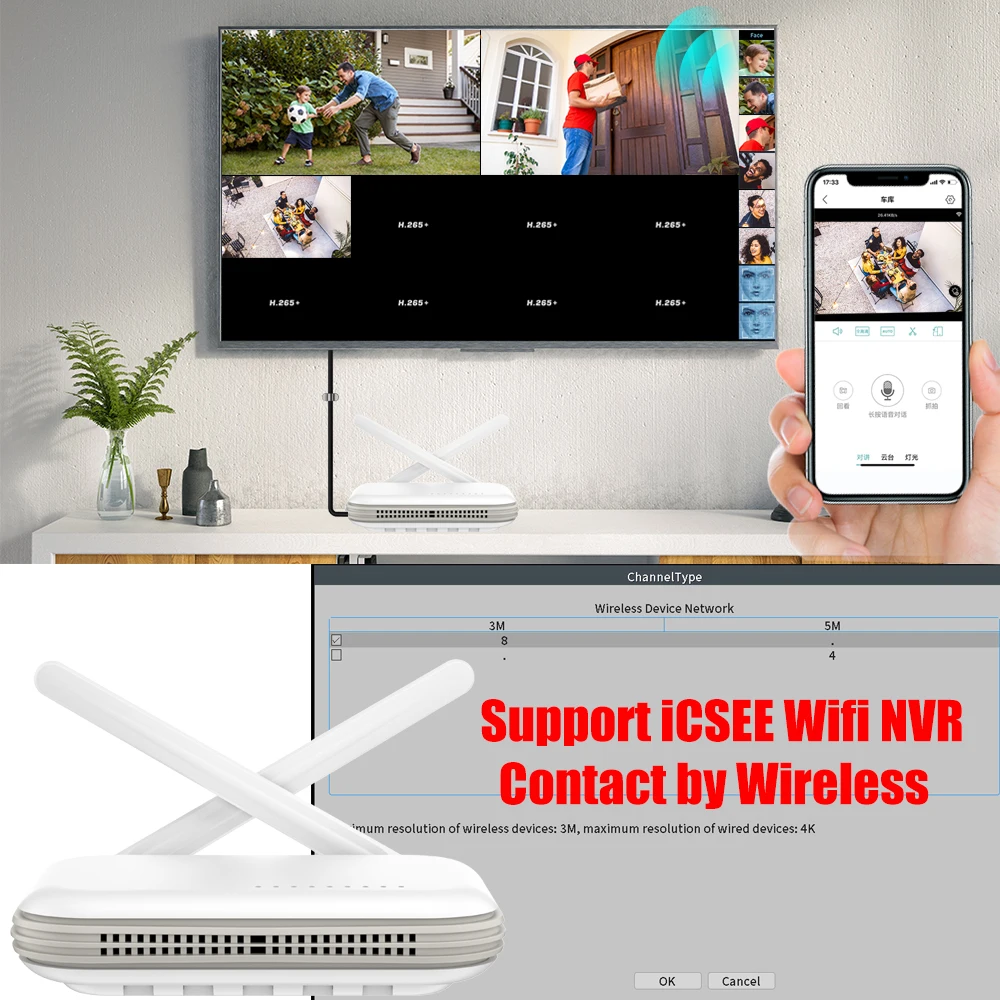 Поддержка новейшего Wifi NVRПоддержка iCSEE новейший Wifi NVR без контакта с кабелем RJ45(Это новейшая функция, NVR должен быть в нашем магазине, или фабрика XM orgional board nvr)