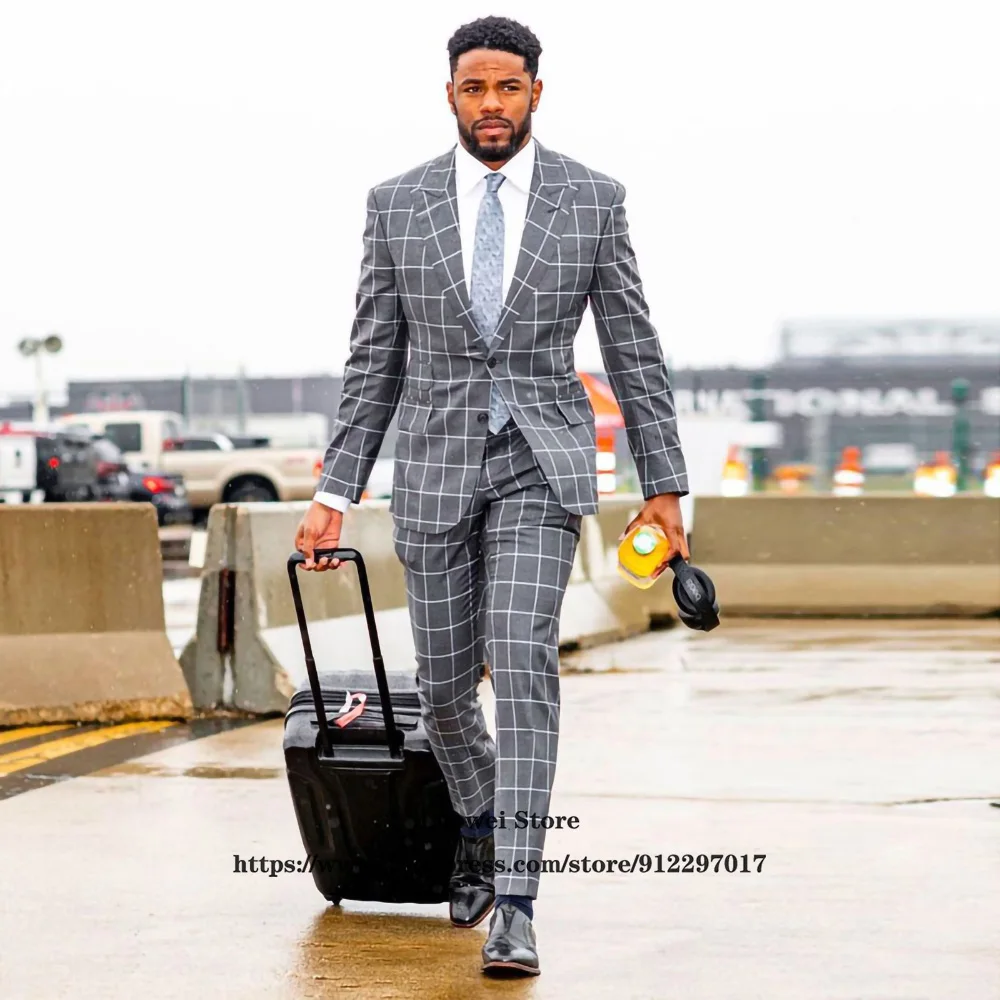 Модные облегающие клетчатые мужские костюмы для жениха, свадебный смокинг с заостренным лацканом, комплект из 2 предметов, пиджак и брюки, официальный деловой пиджак для мужчин