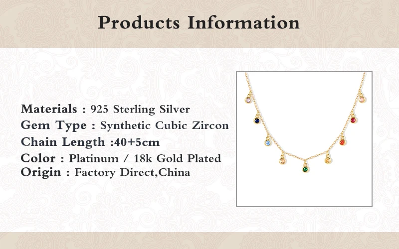 Женское серебряное ожерелье BOAKO S925 с радужным кубическим цирконием