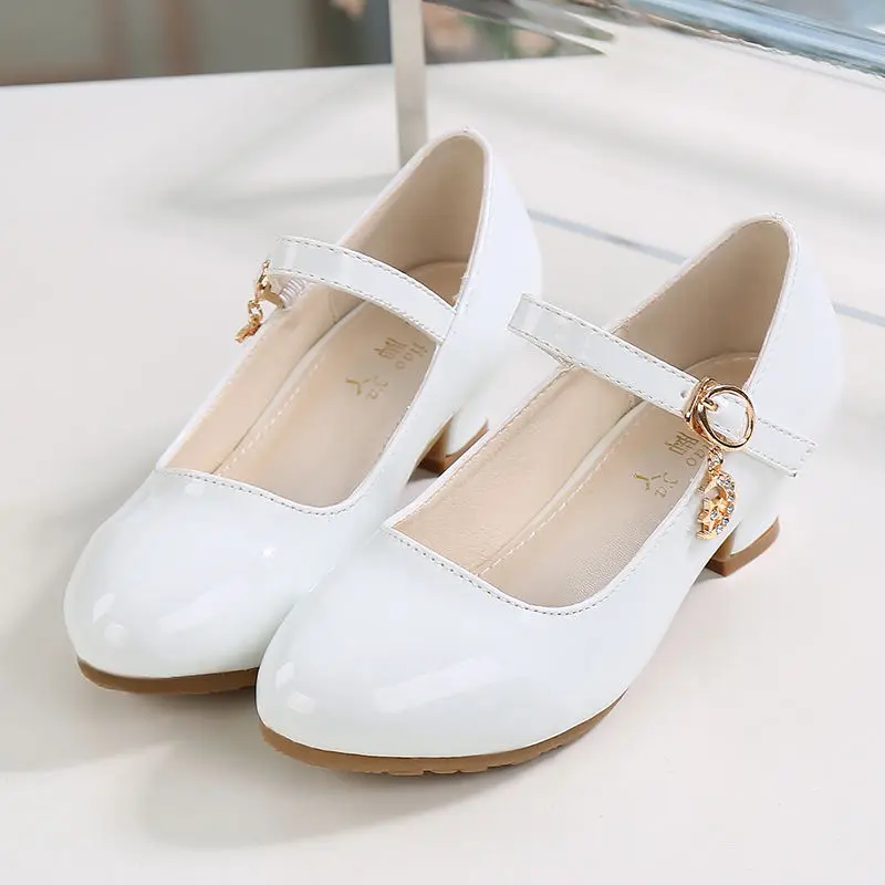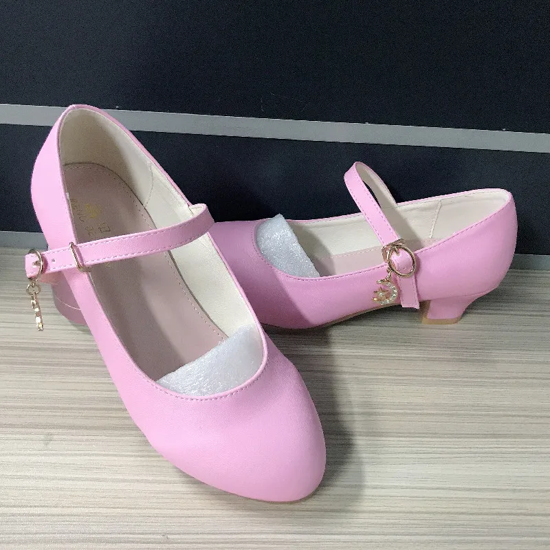 Женские розовые кожаные туфли ULKNN, серебристые туфли принцессы для девочек, сандалии на высоком каблуке, блестящие детские вечерние туфли Стразы