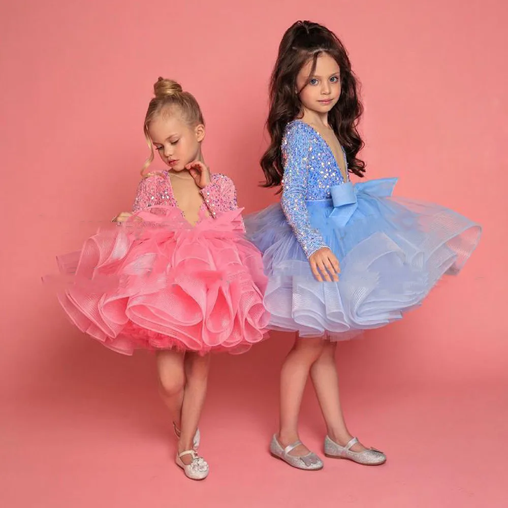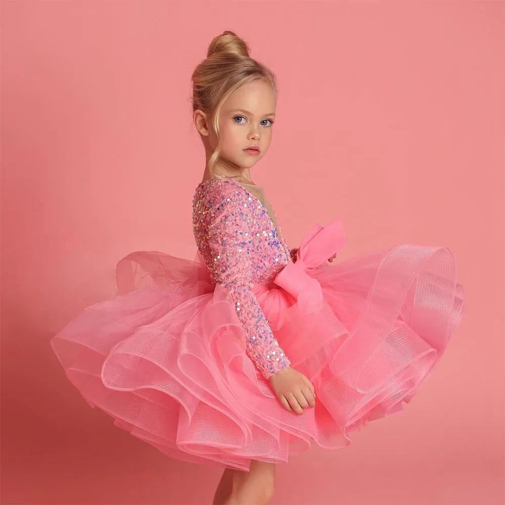 Детское Пышное Платье-пачка с длинными рукавами и большим бантом