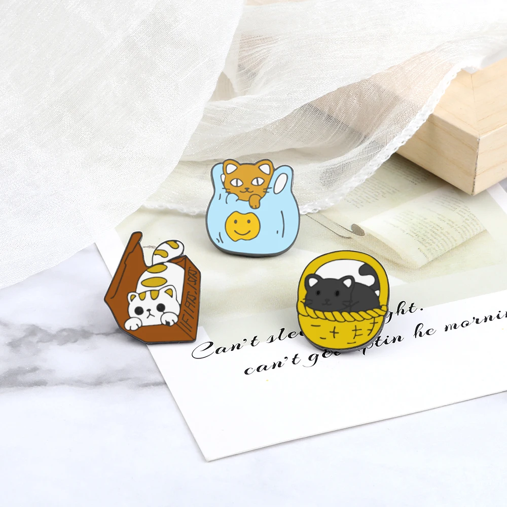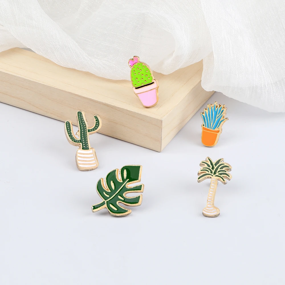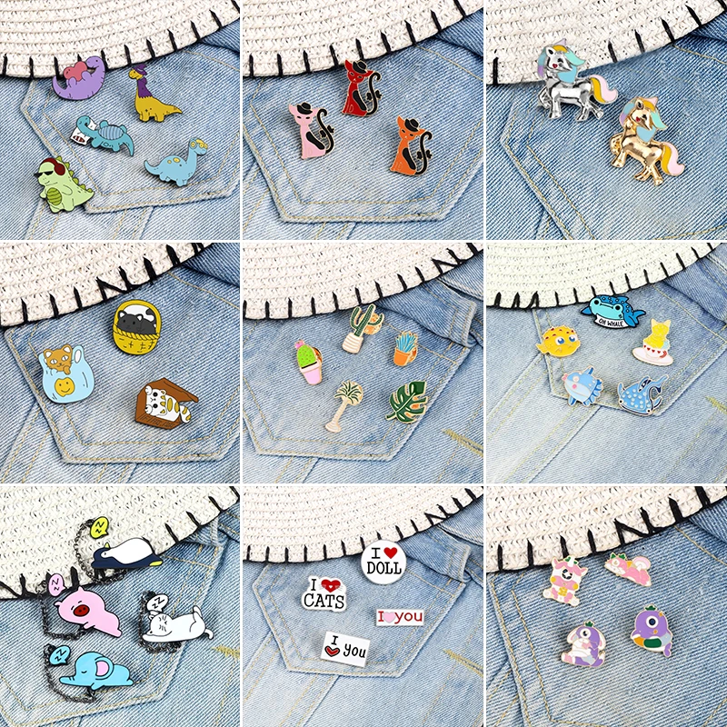 3-5 шт./компл. эмалированные булавки с зелеными растениями, мультяшный динозавр, кошка карусель, броши в виде акулы, металлический значок на цепочке, булавка на лацкане, ювелирный костюм