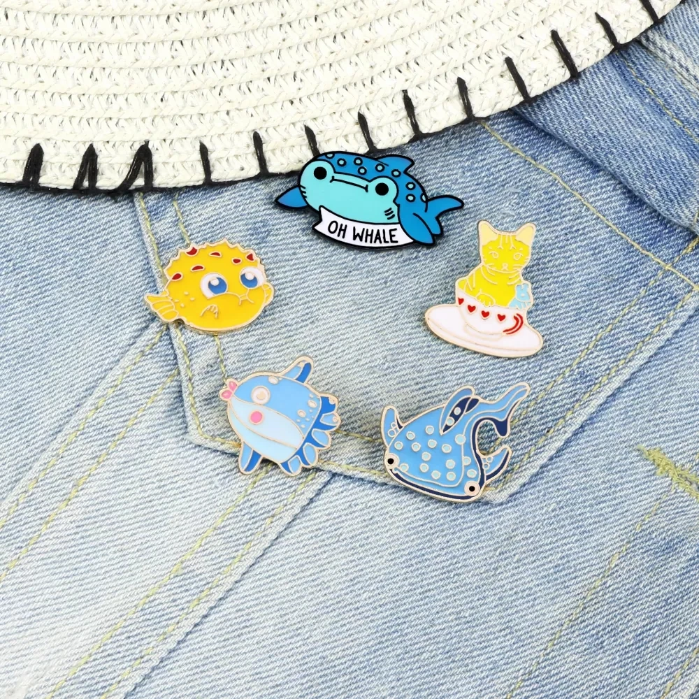 Симпатичная брошь в виде мультяшного животного, морская рыба, Кит, ...