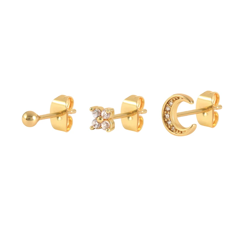 Женские серьги-гвоздики MC 3 шт., изысканные серьги с цирконием в виде звезды/Луны, вечерние ювелирные украшения для пирсинга