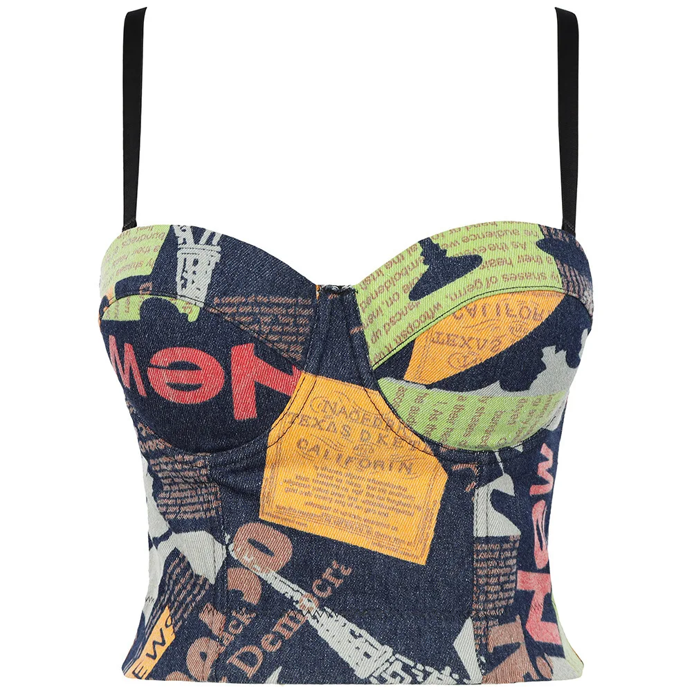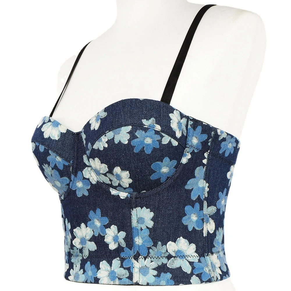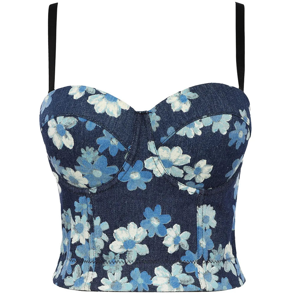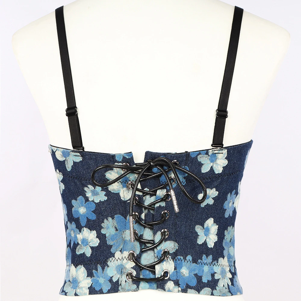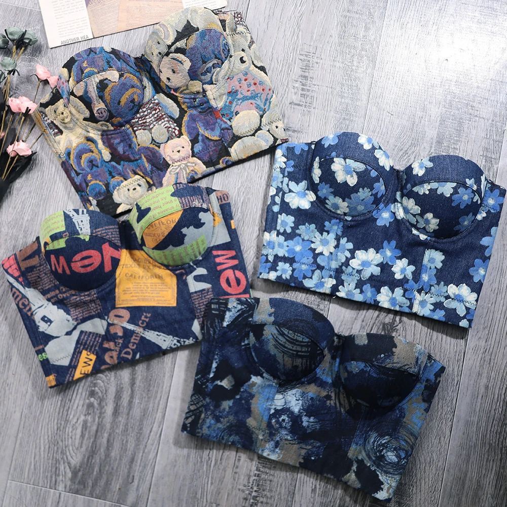 Весенний сексуальный женский Джинсовый корсет с чашкой 2022 года, для ночного клуба, для вечеринки, короткий женский топ на бретельках, укороченный топ с пуш-ап на груди YH1193