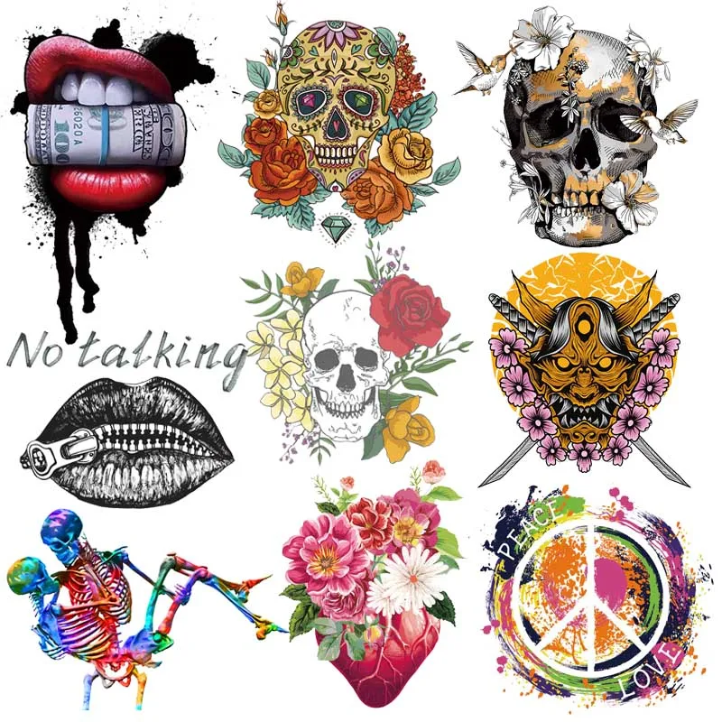 Термонаклейки с черепом в стиле панк, термонаклейки для одежды, Джо...