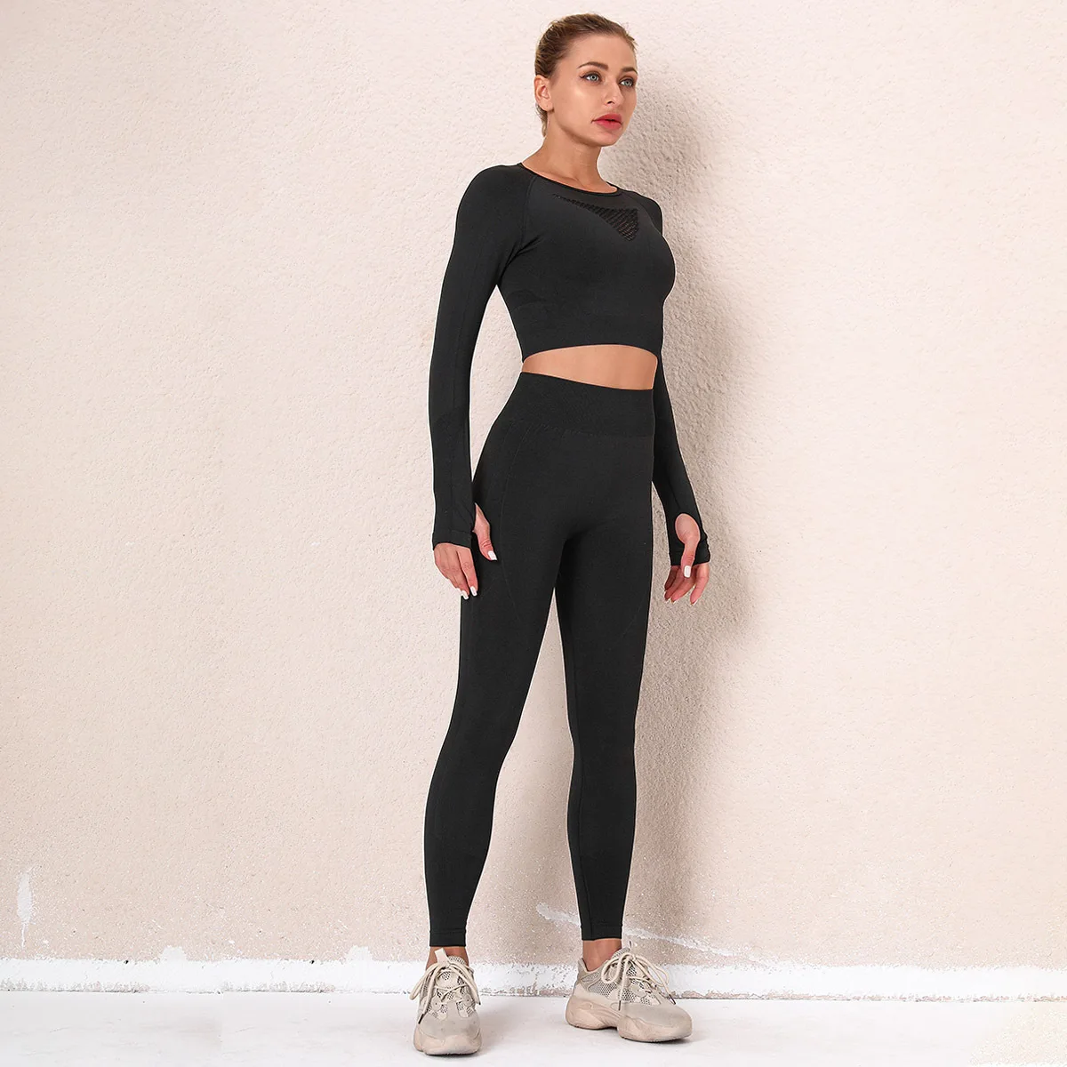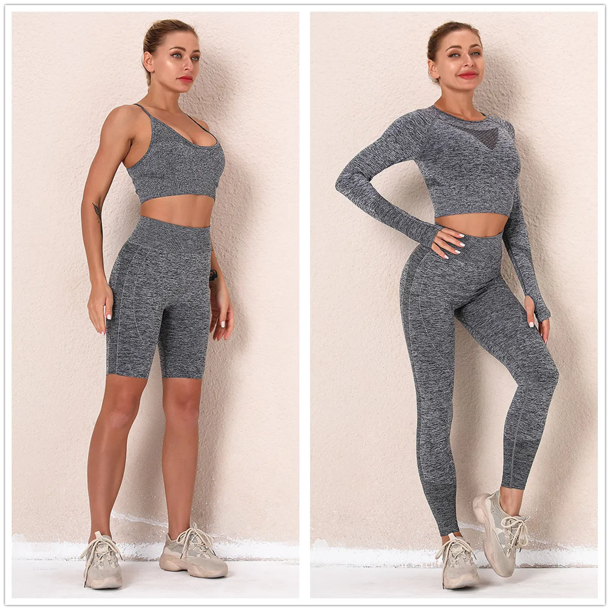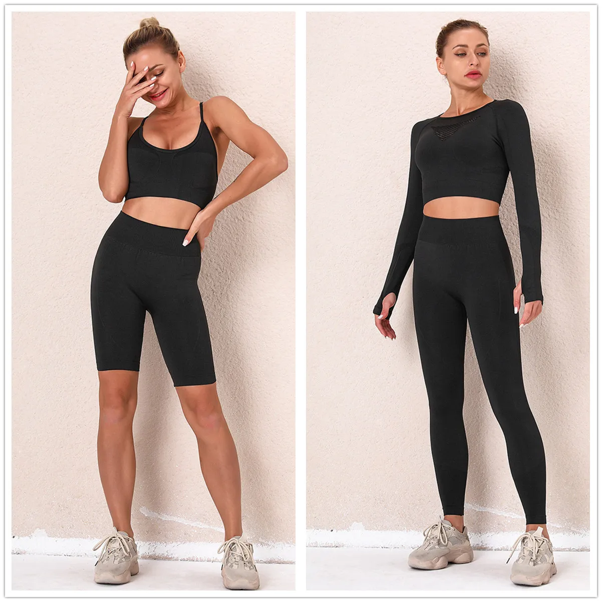 Бесшовные женские комплекты для тренажерного зала, женские спортивн...