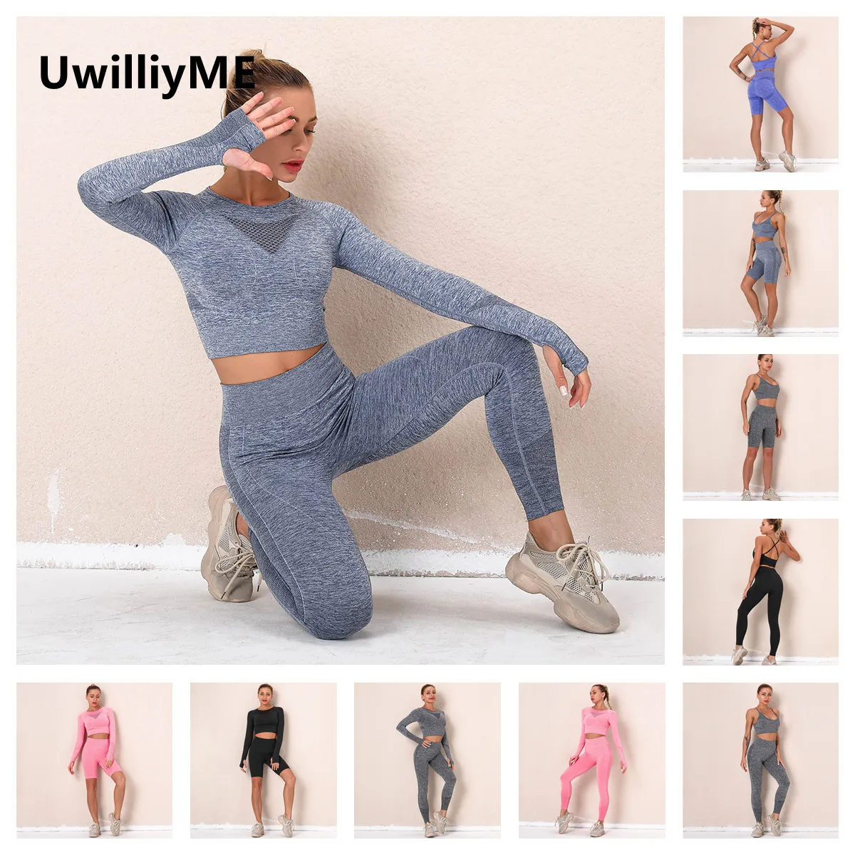 Комплект для йоги UwilliyME женский бесшовный, комплект из 2 предметов, тренировочная спортивная одежда, облегающий костюм для фитнеса, спортивная одежда