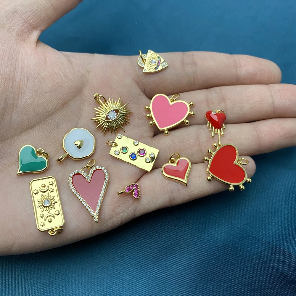 Подвески с красным сердцем, эмалевые Подвески с капающим маслом для изготовления ювелирных изделий, подвеска сделай сам, ожерелье, браслет, медные аксессуары, подарок для пар