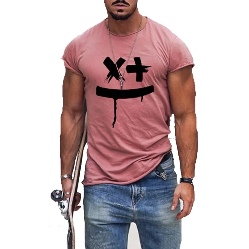 Мужские рубашки с коротким рукавом футболки для мужчин sОблегающие топы со смайликом; Спортивные повседневные милые футболки в стиле Харадзюку