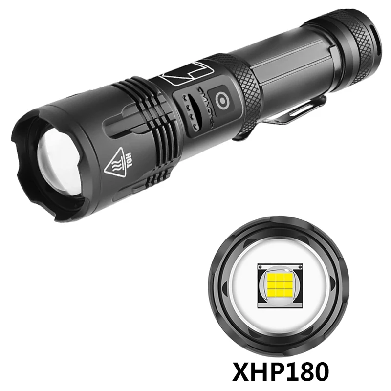 Светодиодный суперъяркий фонарик XHP180, фонарик с фокусировкой и а...